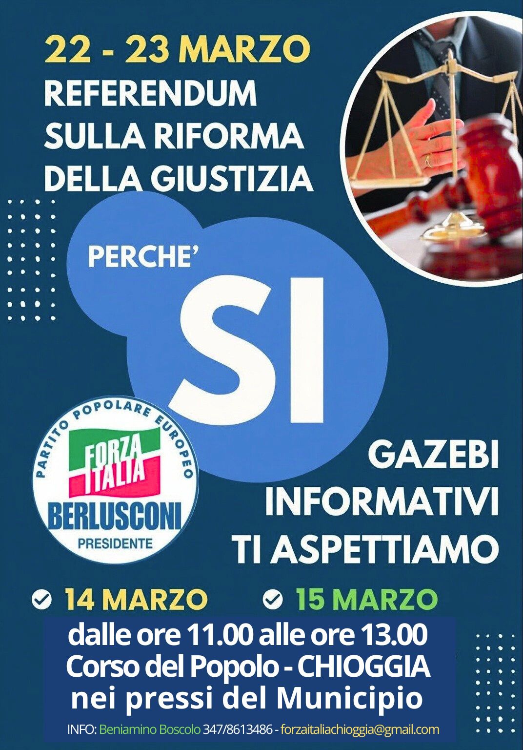 Sabato 14 e Domenica 15 Marzo, in un splendido week end di sole ☀️, FORZA ITALIA CHIOGGIA è scesa in piazza con il gazebo per incontrare i cittadini e sostenere le “ragioni del SÌ “ al prossimo referendum.